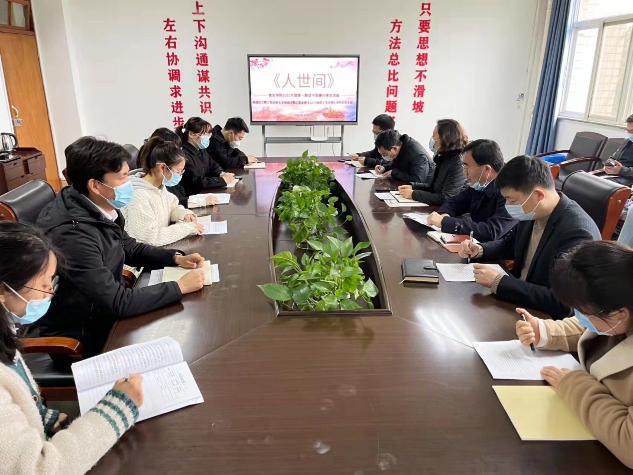 3月31日,食生学院党委举办2022年第一期读书思廉分享交流会,本期交流会的主题是“沉浮人世间,长扬真善美——读《人世间》”。院党委书记万由令,食品物理加工研究院教工党支部、生物技术教工党支部和2019级硕士生党支部的党员,2021级本科生学生代表参加了此次读书会,读书会由食品物理加工研究院教工党支部书记任晓锋主持。