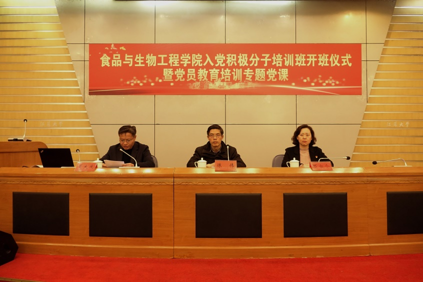 3月10日下午,食生学院入党积极分子培训班开班仪式在会议中心第一报告厅举行。校党委组织部副部长陈伟,校党委宣传部副部长王玉忠,院党委书记万由令,学院师生党员及入党积极分子参加开班仪式。开班仪式由学院党委副书记夏大庆主持。