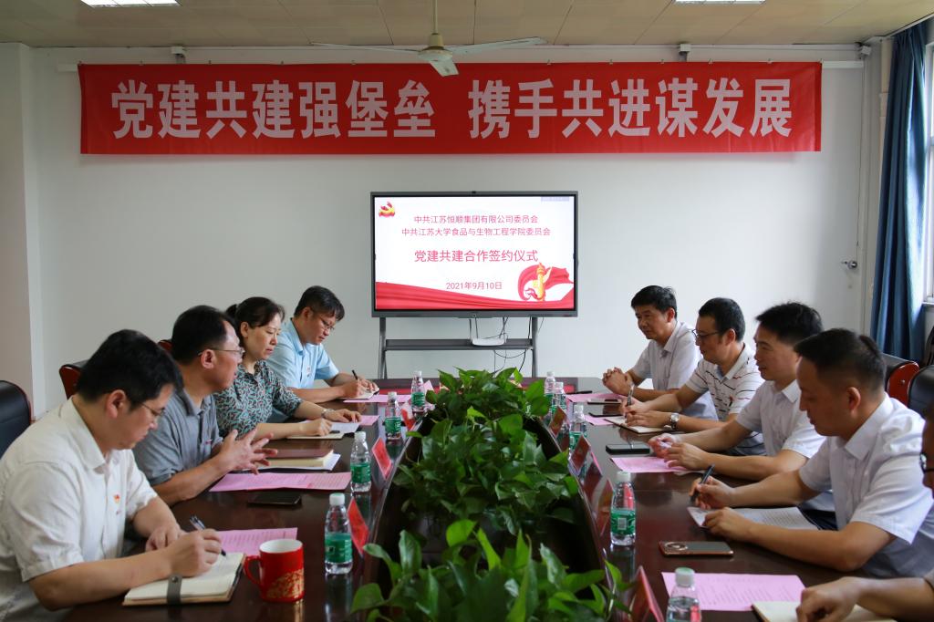 为深入贯彻落实党的十九大精神,丰富党建工作内涵,创新党建工作模式,9月10日上午,bat365正版唯一官网党委与江苏恒顺集团有限公司党委举办党建结对共建仪式。江苏恒顺集团党委委员、恒顺醋业有限公司总经理李国权、江苏恒顺集团党委副书记高广、江苏大学党委常委、组织部部长马志强、食生学院党委书记万由令、院长邹小波以及双方党员代表10余人参加此次共建活动。共建仪式由食生学院党委书记万由令主持。