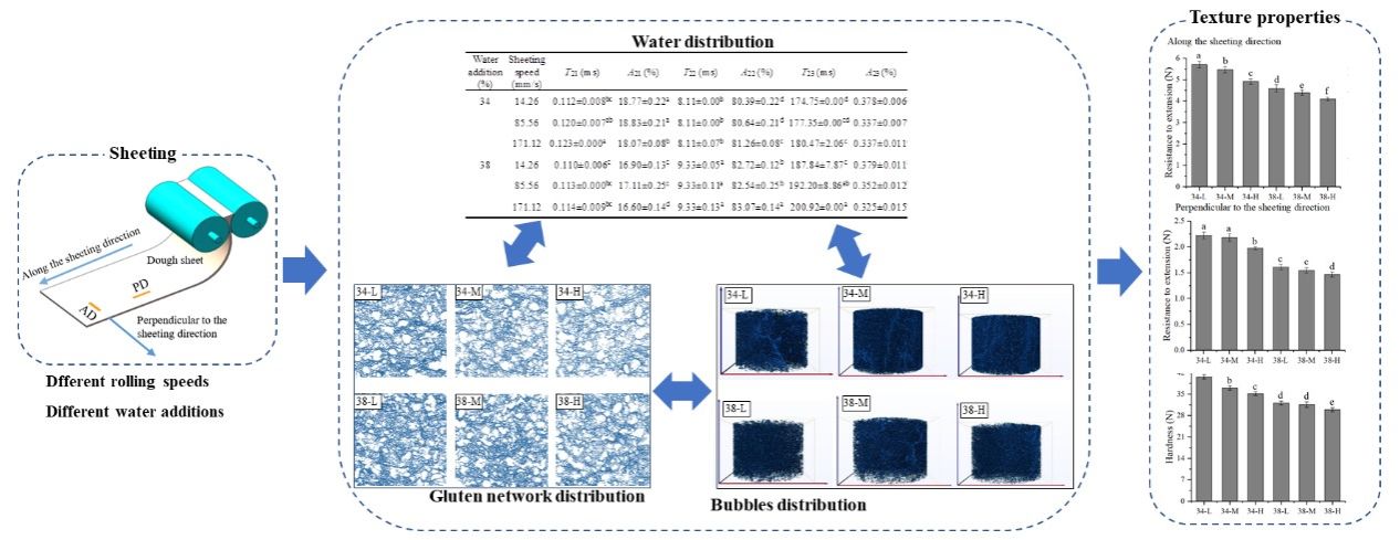 近日,bat365正版唯一官网徐斌教授团队在国际Top期刊Food Chemistry上在线发表题为“Analysis of the effect of rolling speed on the texture properties of noodle dough from water-solid interaction, development of gluten network, and bubble distribution”的研究论文。bat365正版唯一官网刘淑一为该论文的第一作者,姜松教授为该文的通讯作者。