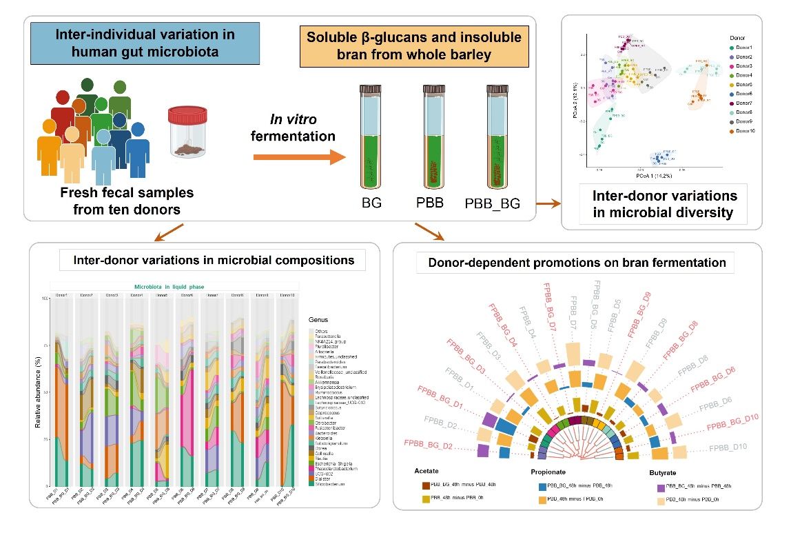 肖香教授课题组在Top期刊Food Hydrocolloids上发表文章:肠道菌群个体差异介导大麦全谷中可溶β-葡聚糖对不可溶麸皮酵解特性的差异性影响