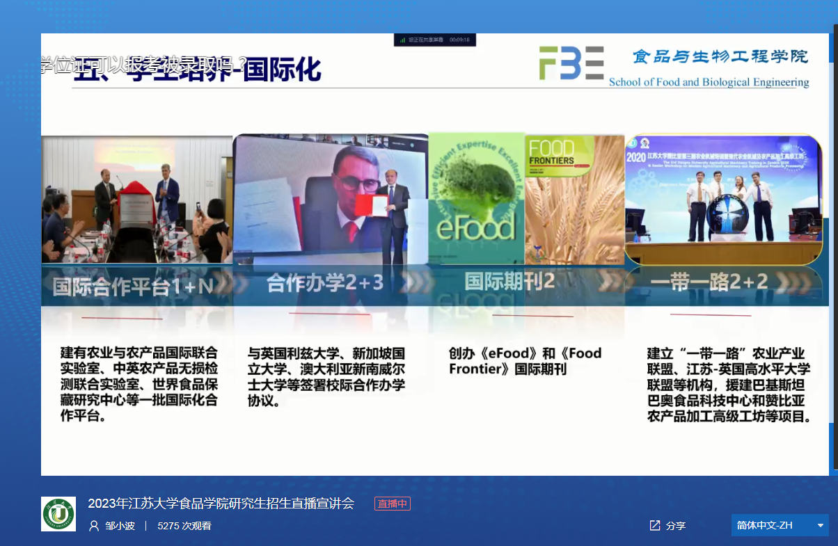 第一阶段由邹小波院长主讲,通过“中国教育在线”平台向广大考生现场直播。邹院长从学院情况、学科特色、学生培养、师资队伍、科学研究等方面给考生做了详细介绍。