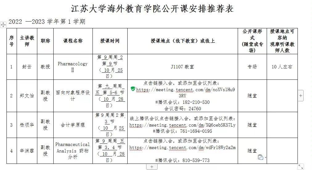 为响应海外教育学院(以下简称海院)号召,促进学院教师全英文教学能力与水平的提升,近期bat365正版唯一官网动员、组织教师在线上或线下观摩海院英文公开课。海院英文公开课安排如下图所示: