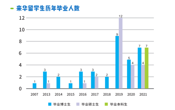 经过十多年的发展,bat365正版唯一官网来华留学教育初具规模,培养了来自35个国家和地区的157名留学生,98%以上是学历生。从学历生层次来看,以研究生为主:博士生82人,硕士生55人,本科生17人;从生源国来看,主要来源于加纳、巴基斯坦、尼日利亚、孟加拉等亚非国家。研究生培养方向遍布学院五大研究方向,培养依托项目包括国家重点研发计划项目、国家科技支撑计划项目、国家自然科学基金重点国际合作项目、国家自然科学基金项目等国家重大科技计划,年均科研经费约3000万元。51位教师任研究生导师,占专任教师比例36%,2021年留学研究生授课老师46人,占专任教师比例32%。本科生培养依托食品科学与工程本科专业(该专业两次通过国家工程教育认证评估,入选国家级首批一流本科专业建设点),采取大类培养模式,配置学业导师,实施线上线下混合教学方案和中外融合实习体系,实现培养全方位。2021年留学本科生授课老师55人,占专任教师比例39%。