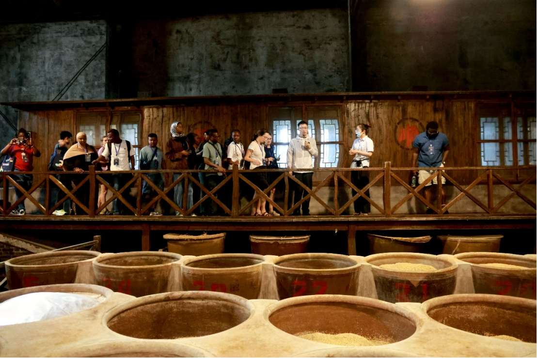 随后,师生一行参观了镇江醋文化博物馆。在讲解员的引导下,留学生们系统了解了镇江香醋的发展历史、生产流程及其在中国饮食文化中的重要地位。通过实物展示、历史文献及互动体验,大家深刻感受到千年醋香背后的文化底蕴与工艺传承。一位来自越南的研究生表示:“这次参观让我不仅看到了先进的食品加工技术,也了解了中国人对传统风味和品质的坚守。”