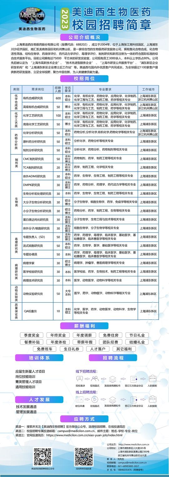 上海美迪西生物医药股份有限公司招聘公告